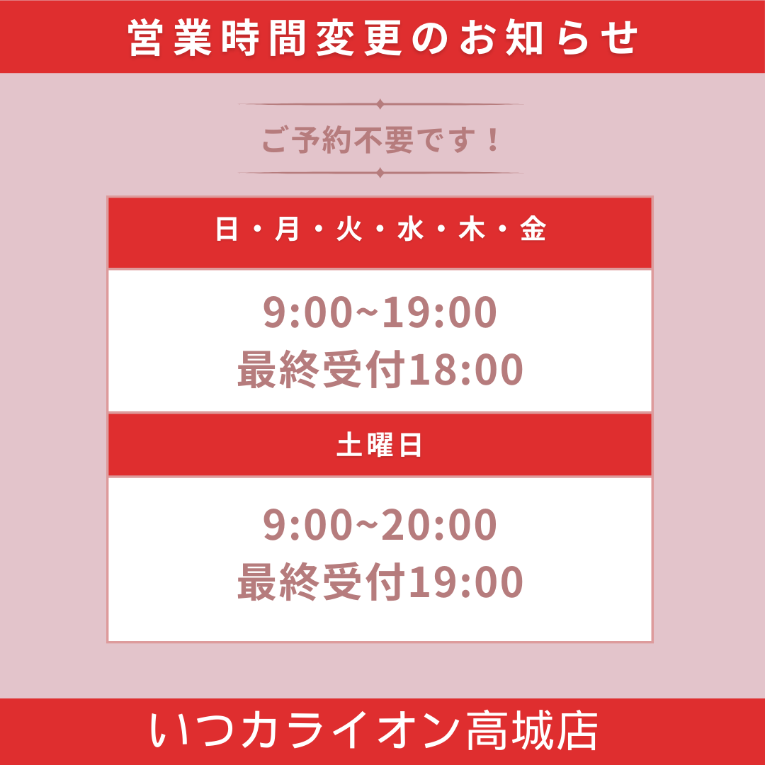 このたび、より多くのお客様にご利用いただけるよう、2025年2月より当店の営業時間を変更し、さらにご予約枠を増設いたします。