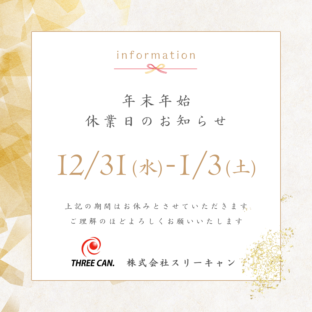 年末年始休業日のお知らせ